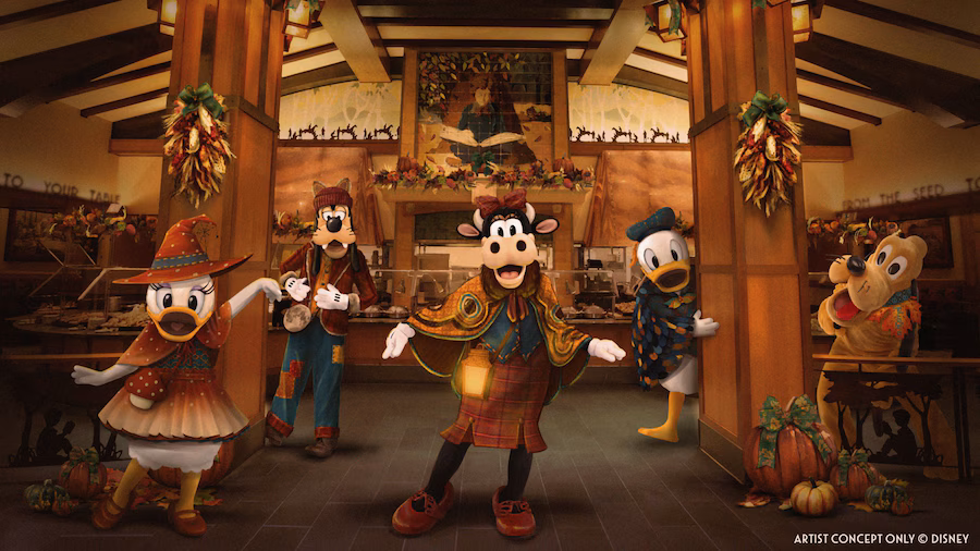 2025年のハロウィーンシーズン、ディズニー・カリフォルニア・アドベンチャーのあるディズニー・グランド・カリフォルニアン・ホテル&スパ内「ストーリーテラーズ・カフェ」にて、クララベル・カウと仲間たちと一緒に楽しめる特別なキャラクターダイニング 「Clarabelle’s Enchanted Halloween Dinner」 が新登場します!